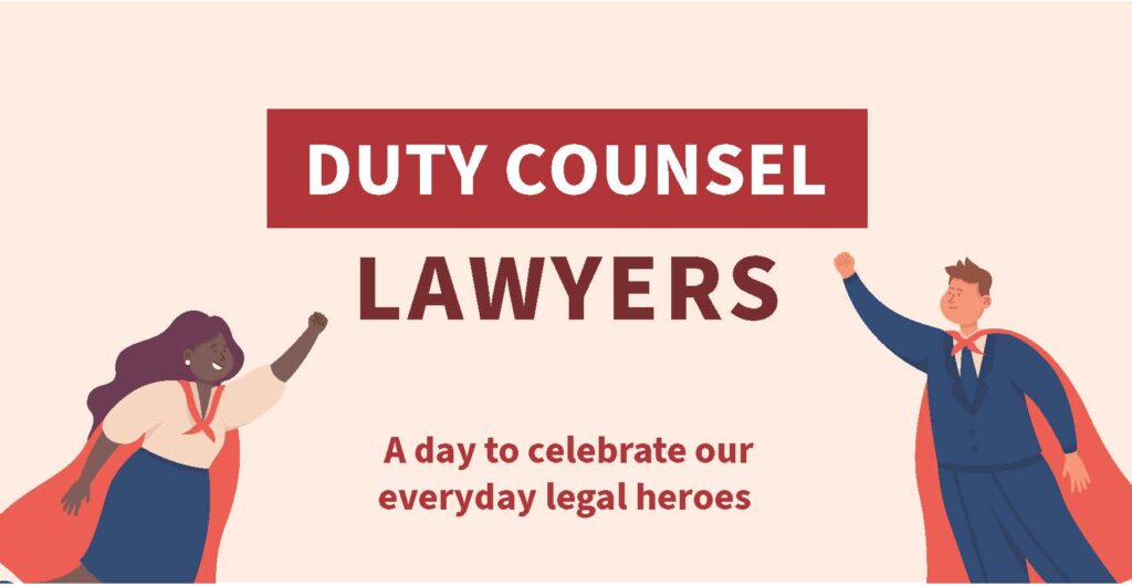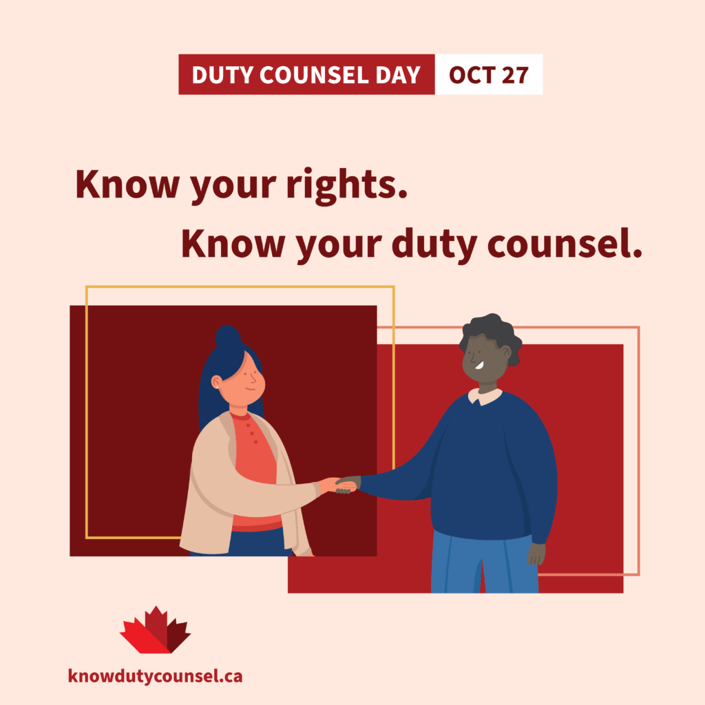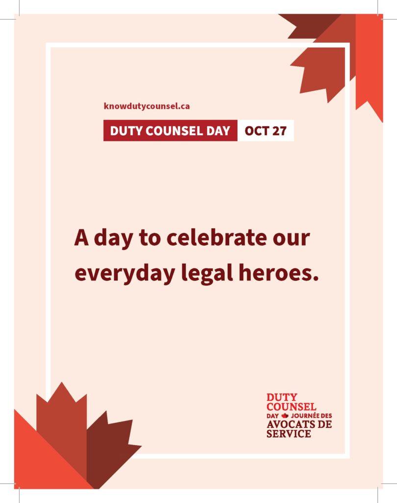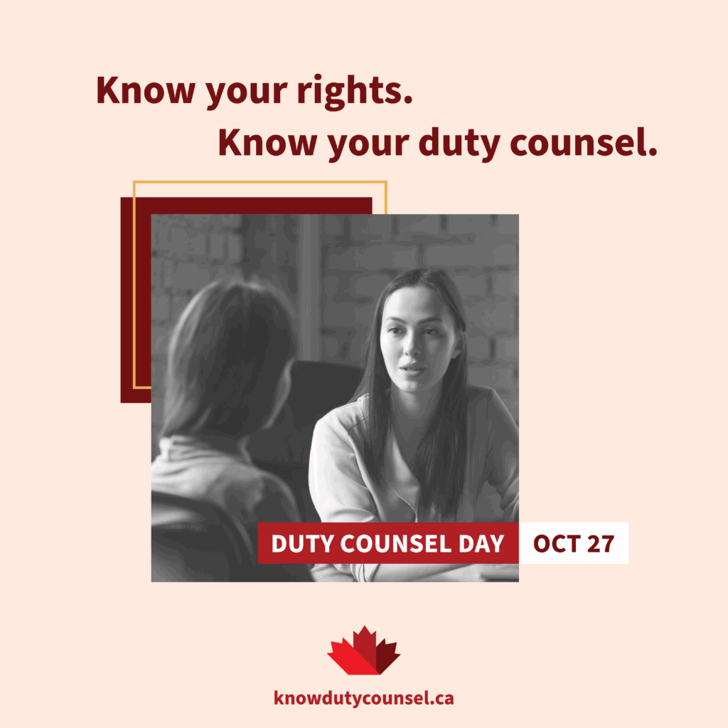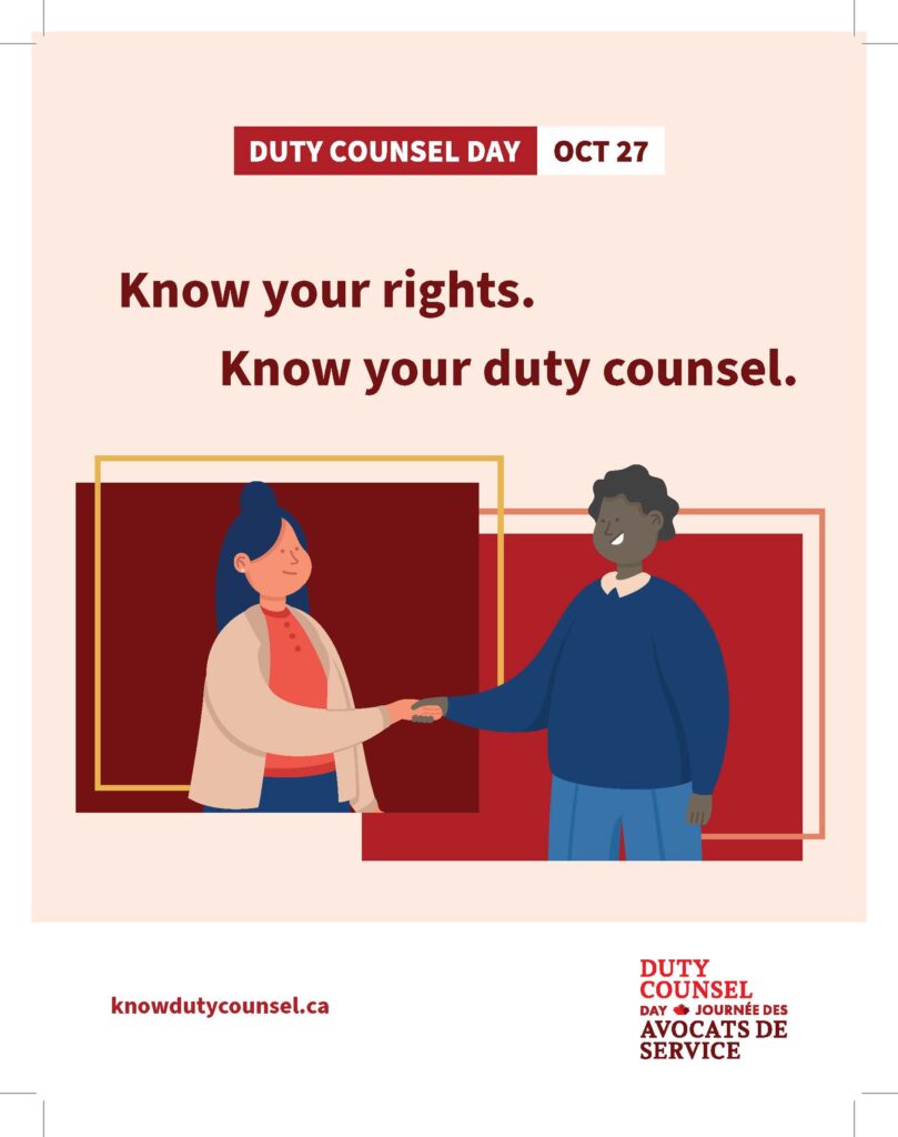 Show your support. Tell your colleagues, peers, friends and family about Duty Counsel Day, and their right to access legal support and services.